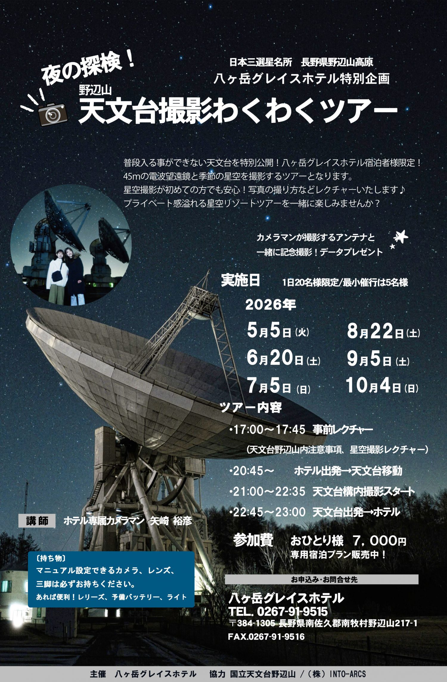 八ヶ岳グレイスホテル宿泊者様限定で普段入る事ができない天文台野辺山を特別公開!